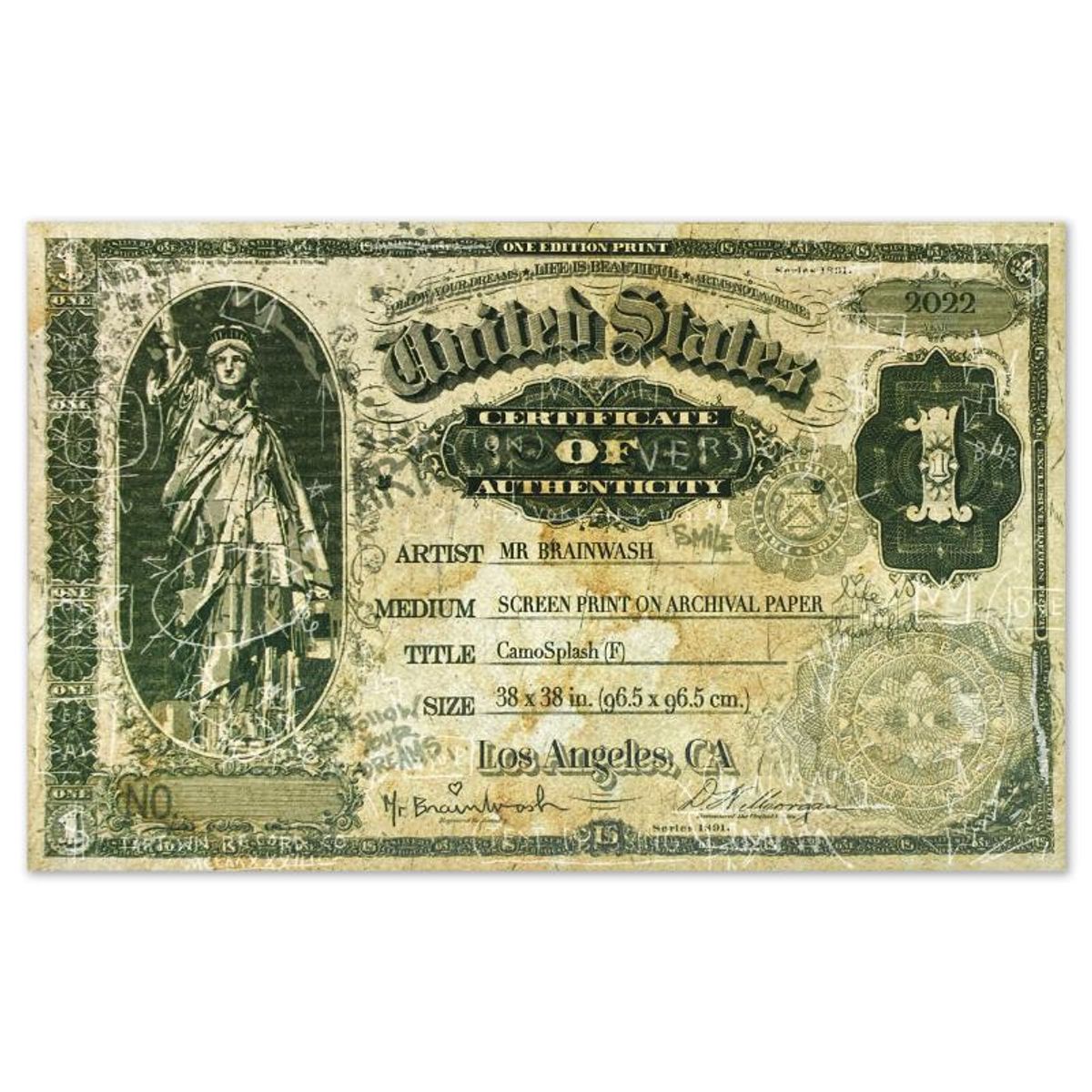 Mr. Brainwash, "Camo Splash F" Framed Limited Edition Silk Screen, Hand Signed with Certificate of Authenticity.