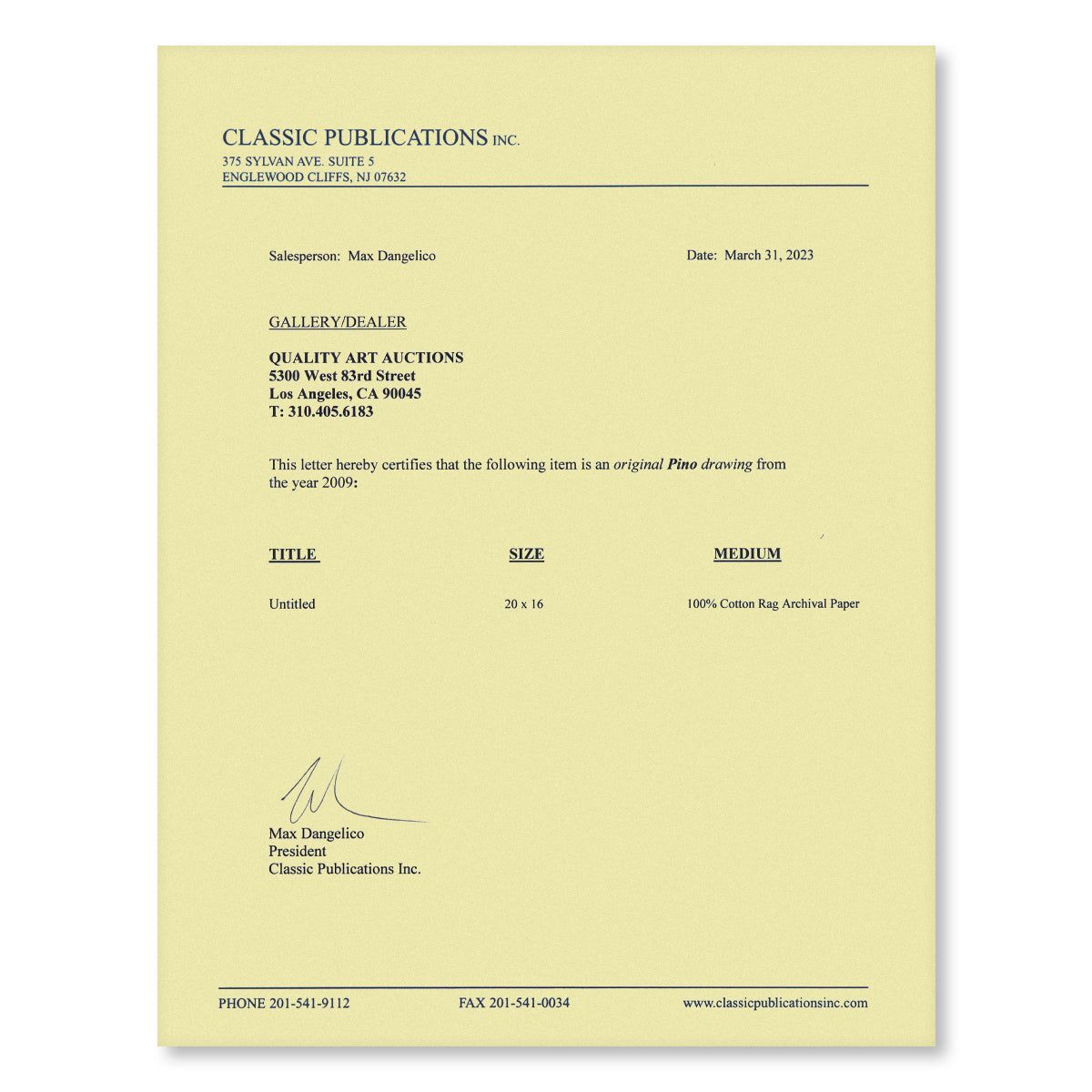 Artist: Pino (1939-2010). Medium: Original Drawing on Paper. Title: Untitled. Size: 19" x 15". Measures approx. 33" x 29" (framed). Signature: Hand Signed. Reference#: 34537.