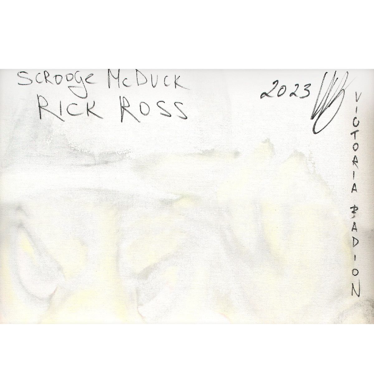 Artist: Viqa. Medium: Original Oil on Canvas with Collage. Title: Scrooge McDuck/ Rick Ross. Size: 27" x 20". Measures approx. 29" x 22" (framed). Signature: Hand signed by the artist. Certificate of Authenticity: Is included. Reference#: 37514.