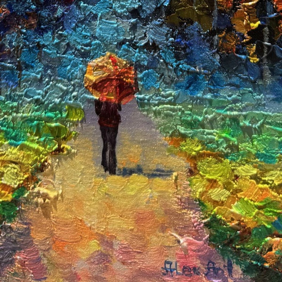 Miss Autumn is an original oil painting on stretched canvas by Alexander Antanenka. Hand signed by the artist, the piece comes with a letter of authenticity. Measures approximately 20" x 16" (image).