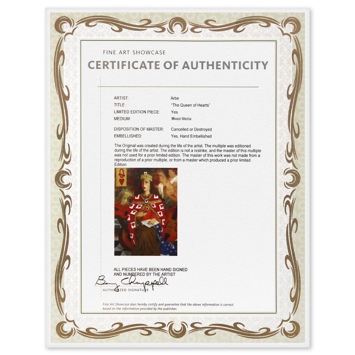 Artist: Arbe. Medium: Mixed Media. Title: The Queen of Hearts. Size: 30" x 22". Signature: Hand Signed and Numbered. Reference#: 80582.