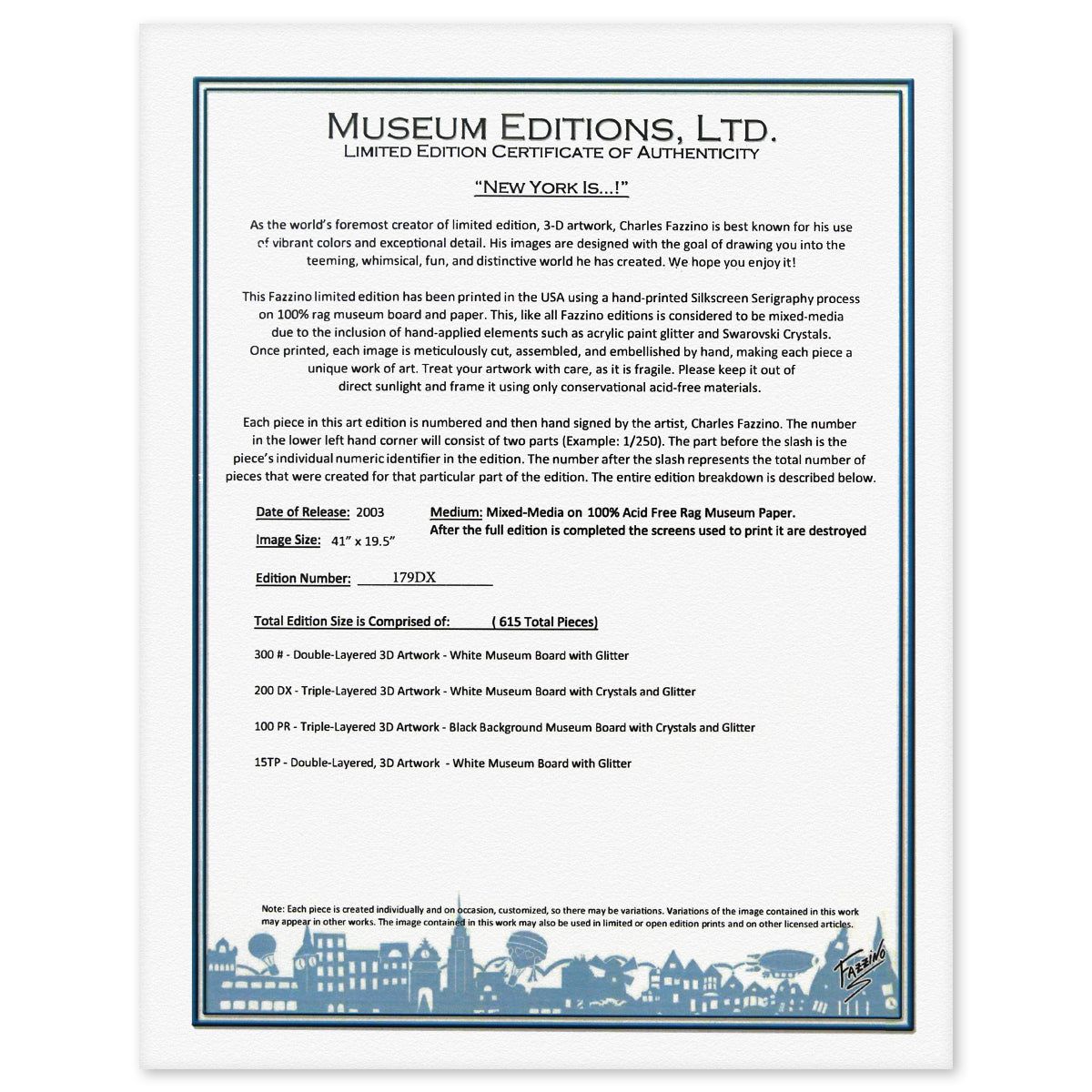 Artist: Charles Fazzino. Medium: 3D Construction Silkscreen Serigraph. Title: NEW YORK IS, . Size: 22" x 42". Measures approx. 30" x 51" (framed). Signature: Hand signed and numbered by the artist. Certificate of Authenticity: Is included. Additional: Deluxe Edition. Reference#: 80619.