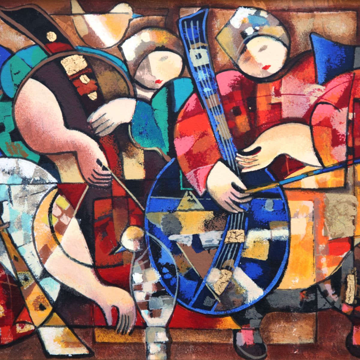 Dorit Levy- Hand Emelished Serigraph on Wood "Unity"