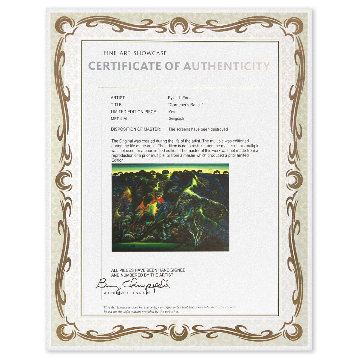 Artist: Eyvind Earle. Medium: Serigraph. Title: Gardeners Ranch. Size: 37" x 46". Reference#: 80599.