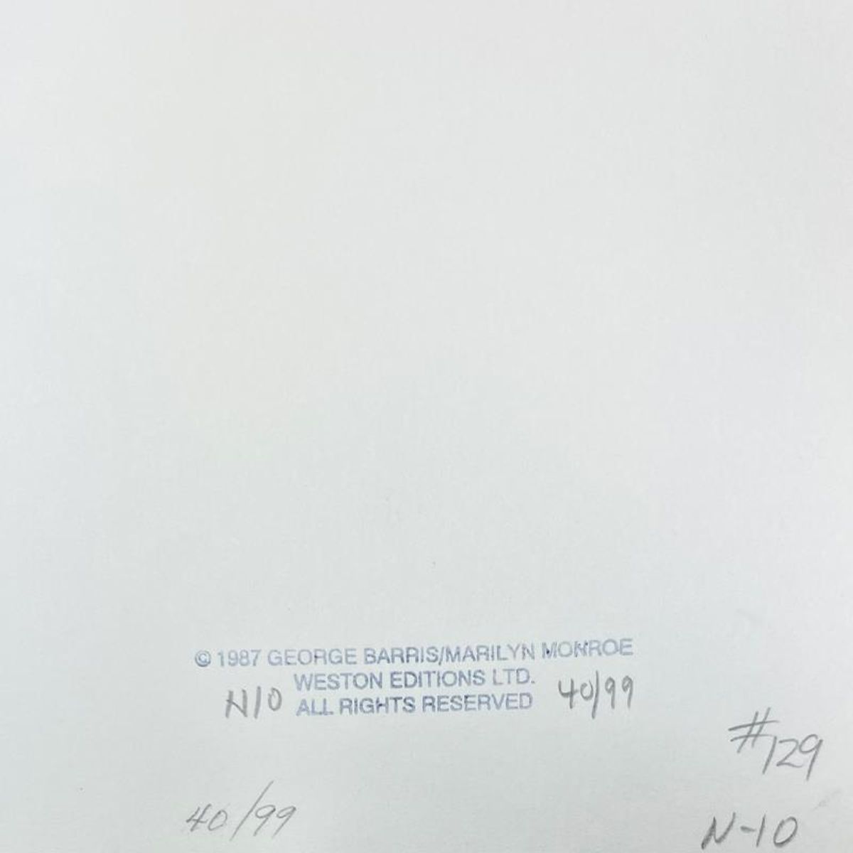 Marilyn Monroe: The Last Shoot is a photograph printed from the original negative taken by George Barris (1922-2016). This photo is part of a series entitled "The Last Photos" which were taken in 1962 just two weeks before Monroe's death and are considered the last photos ever taken of the icon. This framed piece is hand signed by the photographer and bears the Edward Weston copyright stamp inverso and Includes Letter of Authenticity. Measures approx. 19" x 22" (frame), 11" x 14" (image). This item requires special handling and may have a longer than usual turnaround. Reference#: 90565.