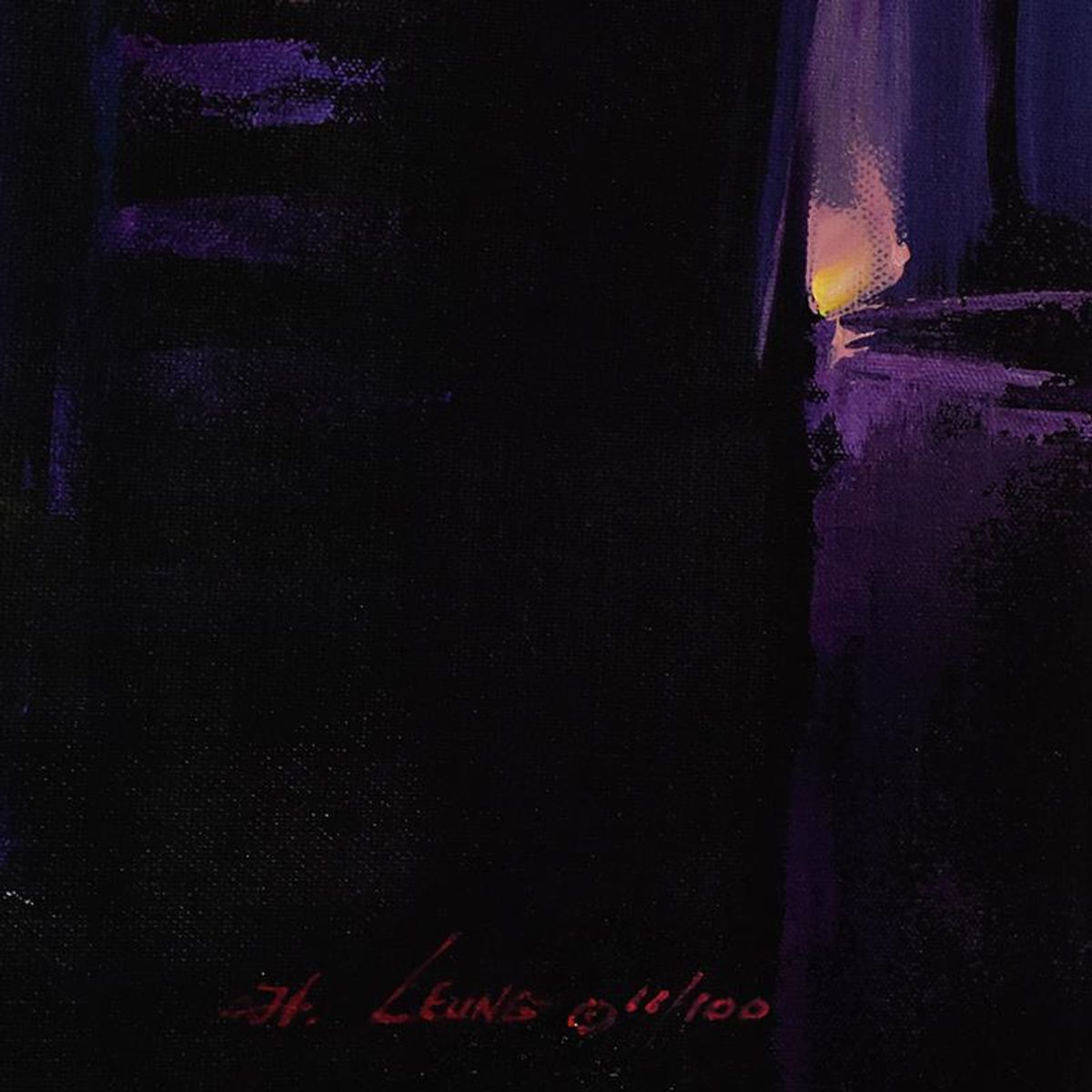 Ancient Village Sunset is a hand embellished limited edition giclee on canvas by H. Leung, numbered 11/100 and hand signed by the artist. Includes Letter of Authenticity. Measures approx. 40" x 30" (image). ** Please note: there is a horizontal patch of faint white scuffing along the bottom edge of the image. **