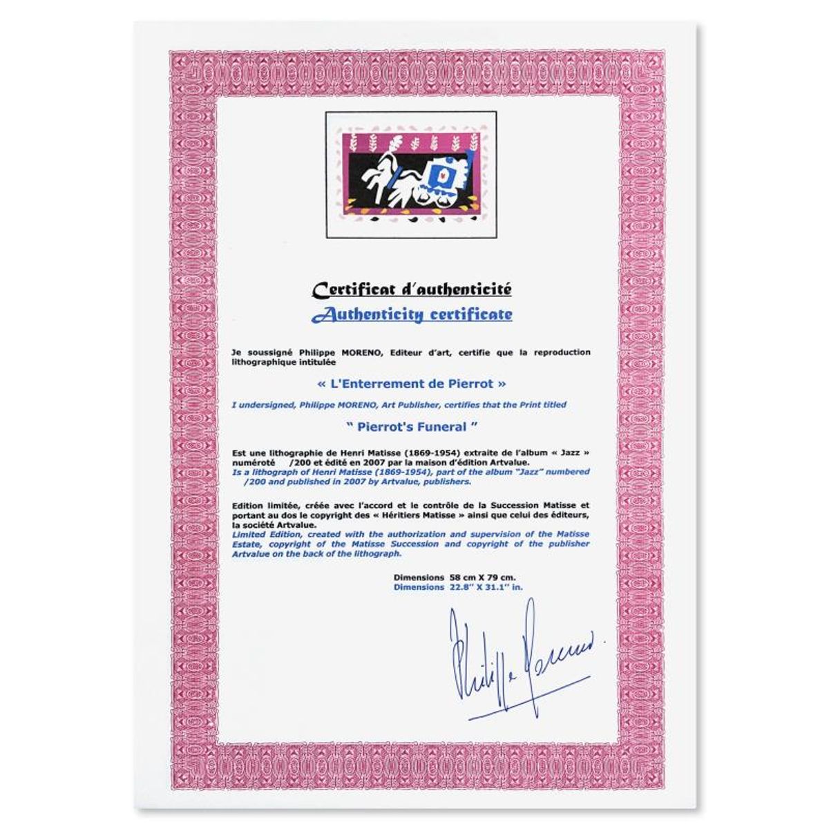 Henri Matisse 1869-1954 (After), "L'Enterrement de Pierrot (Pierrot's Funeral)" Framed Limited Edition Lithograph with Certificate of Authenticity.