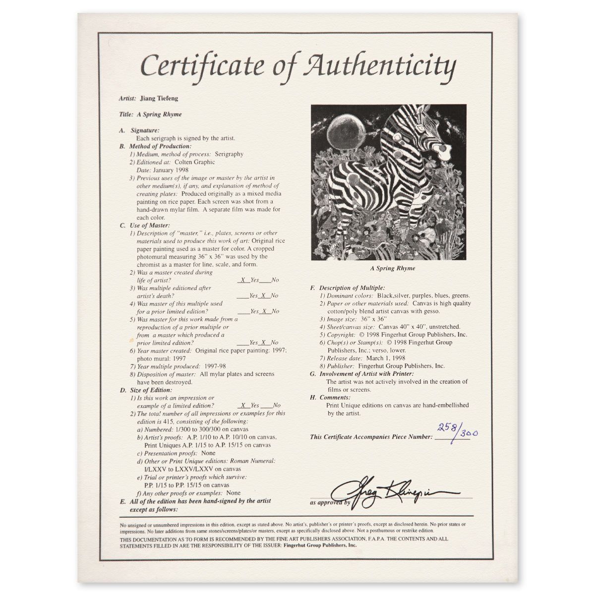 Artist: Jian Tie Feng. Medium: Serigraph. Title: A Spring Rhyme. Size: 36" x 36". Signature: Hand Signed and Numbered. Reference#: 80550.
