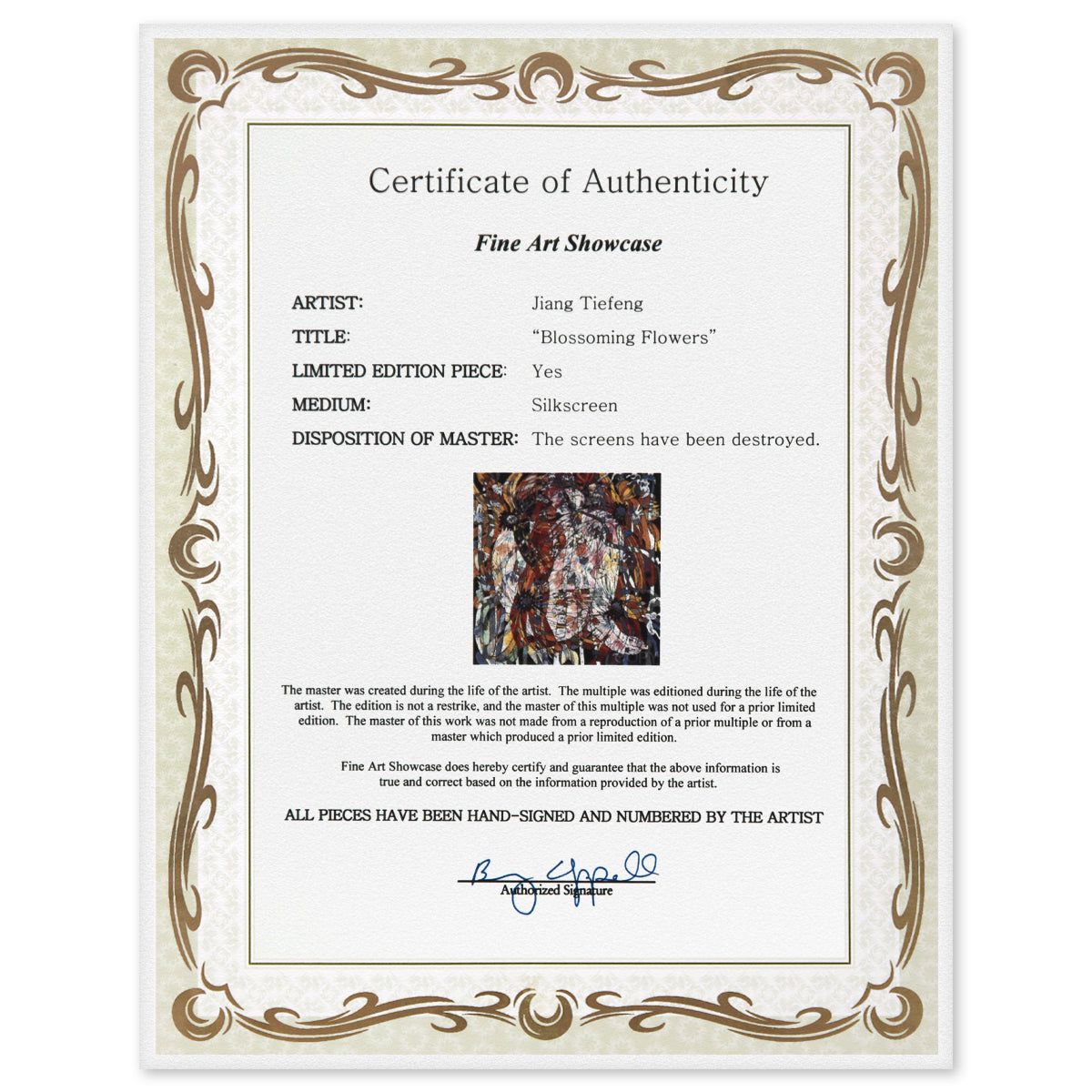 Artist: Jian Tie Feng. Medium: Silkscreen. Title: Blossoming Flowers. Size: 44" x 43". Signature: Hand Signed and Numbered. Reference#: 80537.