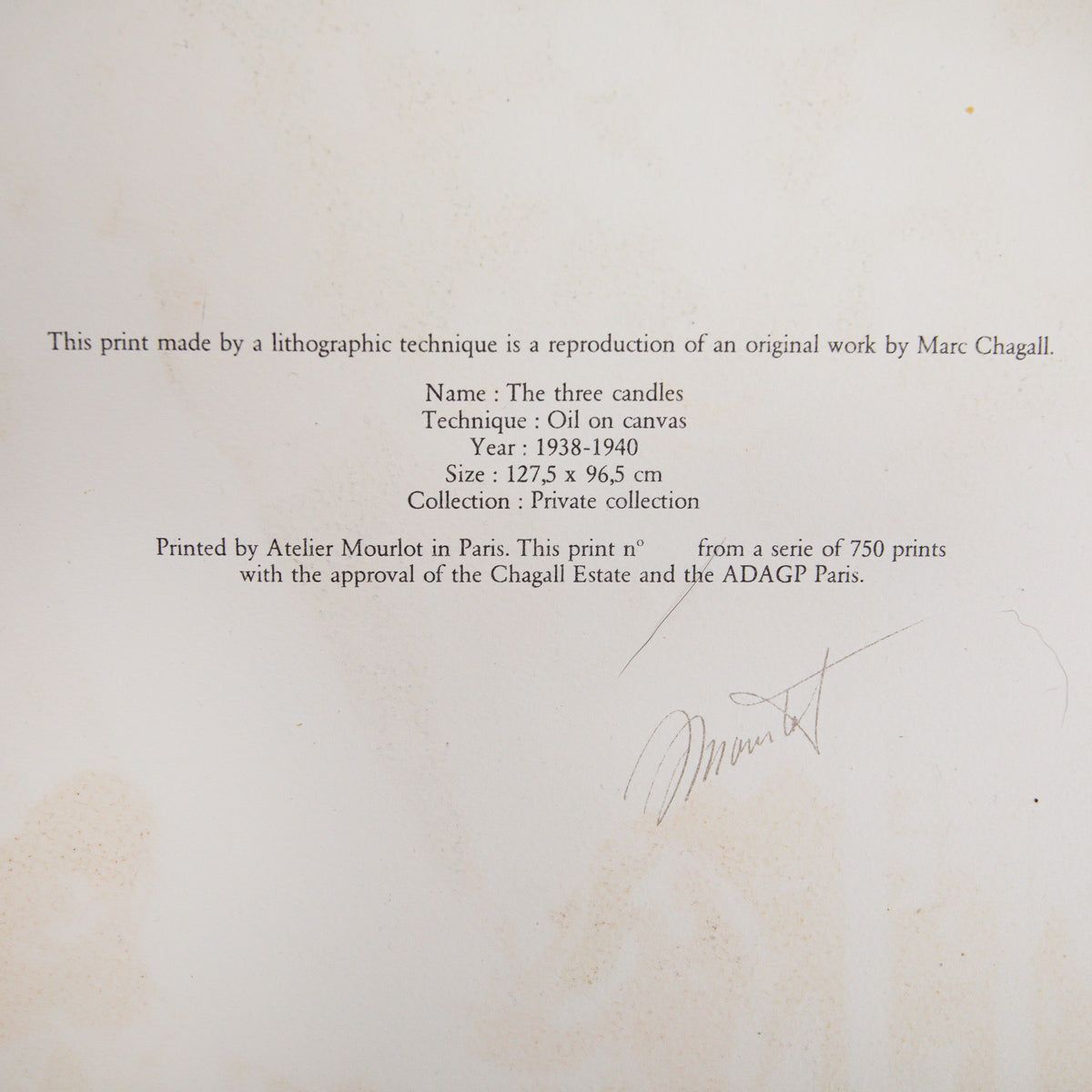 Marc Chagall- Lithograph "Les Trois Cierges"
