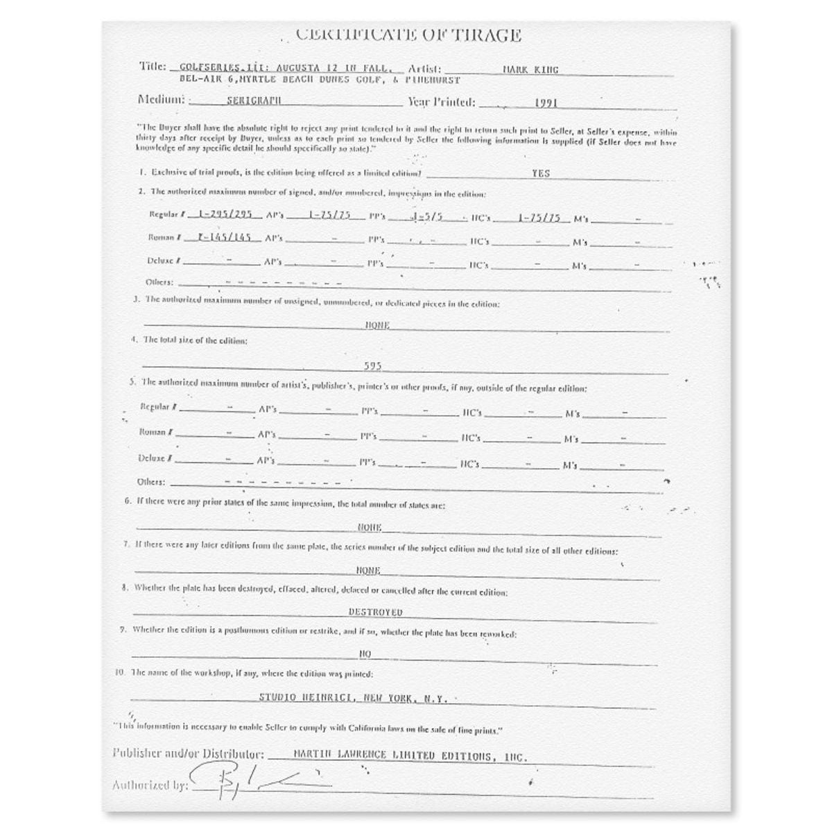 Mark King (1931-2014), "Myrtle Beach Dunes Golf" Hand Signed Limited Edition Serigraph with Letter of Authenticity.
