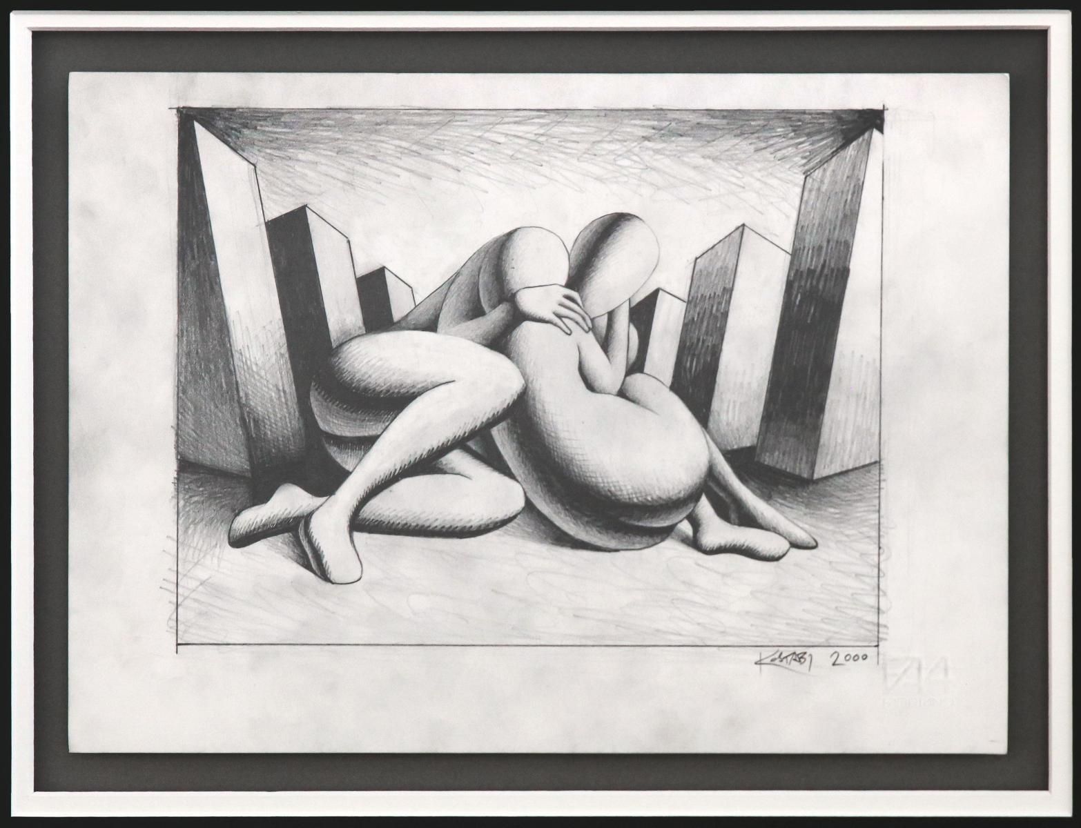 Artist: Mark Kostabi. Medium: Original Drawing on Paper. Title: Peerless Devotion. Size: 11" x 14". Measures approx. 18" x 22" (framed). Signature: Hand Signed by the artist. Certificate of Authenticity: Is included. Additional: Custom framed. Reference#: 20639.