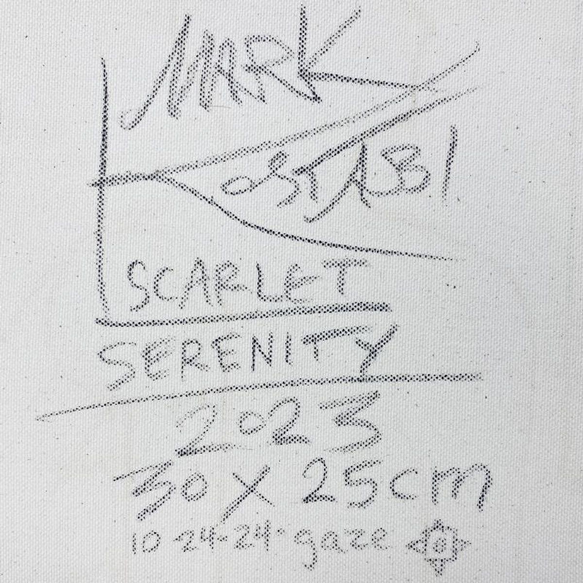 Scarlet Serenity is an original oil painting on canvas by Mark Kostabi, hand signed by the artist. This piece comes framed. Includes Certificate of Authenticity. Measures approx. 22" x 20" (frame), 12" x 10" (image). This item requires special handling and may have a longer than usual turnaround.
