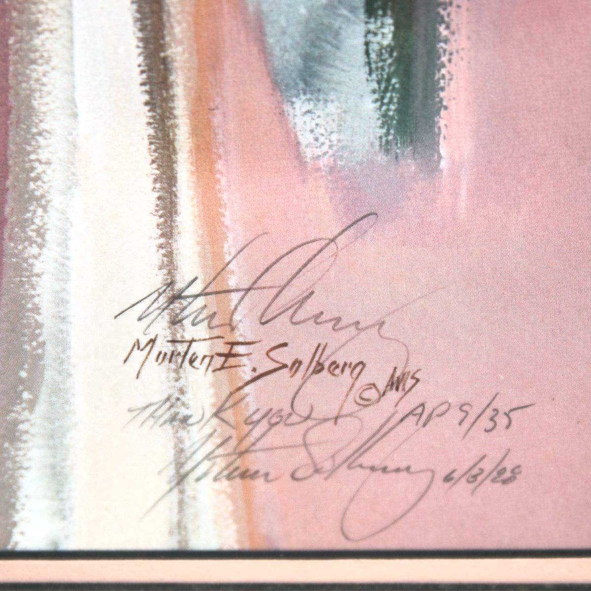 Artist: Morten F. Solberg. Medium: Offset Lithograph. Title: Indian Warrior. Size: 21" x 16". Measures approx. 30" x 26" (framed). Signature: Signed and numbered. Additional: Disclaimer: The frame shows some signs of wear consistent with age and handling. Please refer to the images for details. Additional images are available upon request. Reframing may be recommended based on personal preference.. Reference#: 82573.