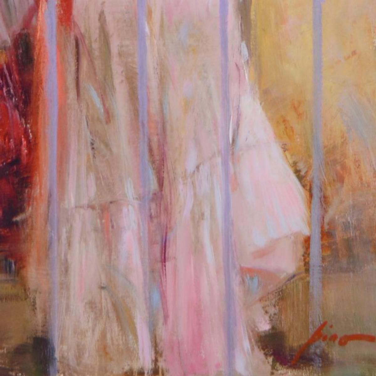 Artist: Pino (1939-2010). Medium: Hand Embellished Giclee on Canvas. Title: Family Time. Size: 40" x 32". Measures approx. 51.5" x 43" (framed). Signature: Hand Signed and Numbered by the artist. Certificate of Authenticity: From the publisher. Additional: Pino's portraits allow glimpses into intensely personal, intimate spaces, conveying emotion through rich, warm color and sensual brushwork. "Family Time" is an artist-embellished limited edition giclee on canvas by Pino (1939-2010). The piece is numbered, hand signed, custom framed, and includes certificate of authenticity.. Reference#: 14067.
