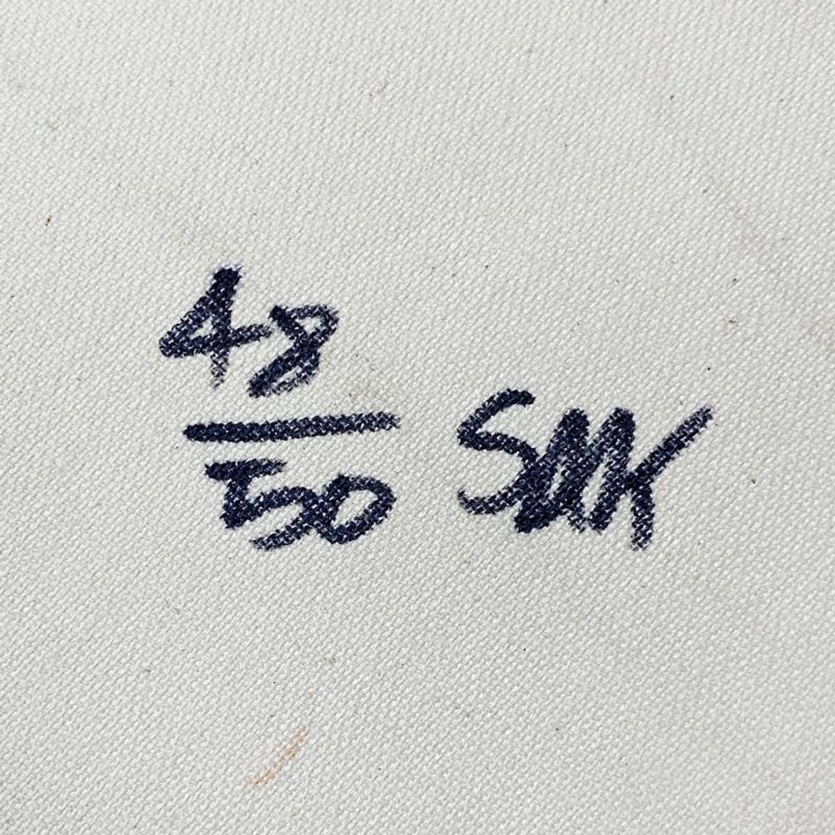 Ben Half Dollar is a hand embellished limited edition silkscreen on canvas by Andy Warhol protege, Steve Kaufman (1960-2010), numbered 48/50 inverso and hand signed by the artist. This piece comes custom framed. Includes Letter of Authenticity. Measures approx. 14.5" x 14" (frame), 11.5" x 11" (image). This item requires special handling and may have a longer than usual turnaround.