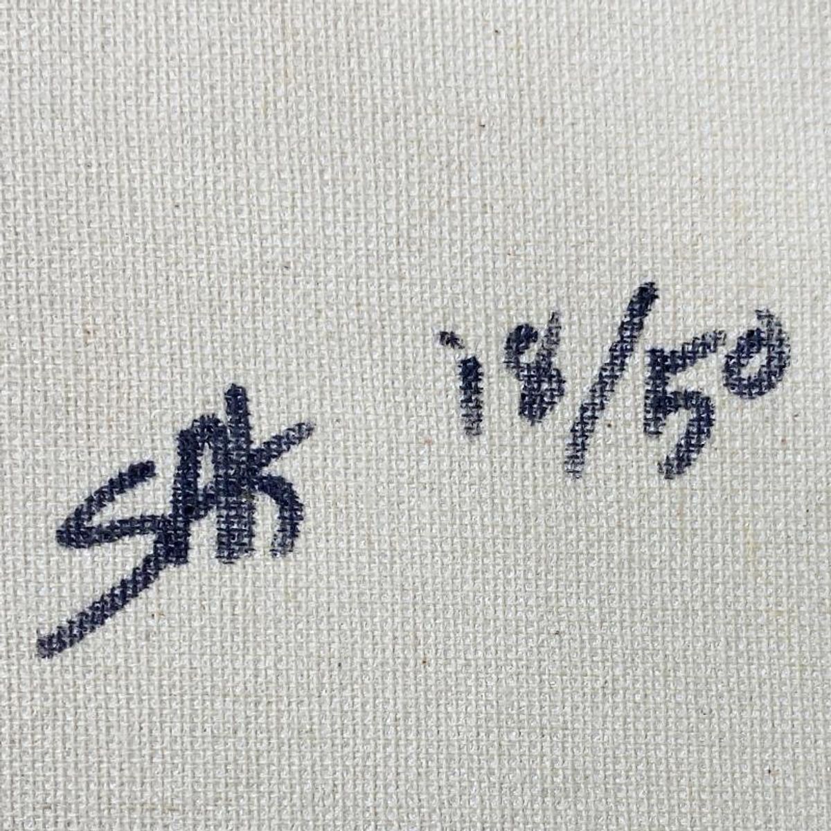 Noah's Arc is a hand embellished limited edition silkscreen on canvas by Andy Warhol protege, Steve Kaufman (1960-2010), numbered 18/50 inverso and hand signed by the artist. This piece comes custom framed. Includes Letter of Authenticity. Measures approx. 17" x 14.5" (frame), 14" x 11.5" (image). This item requires special handling and may have a longer than usual turnaround.