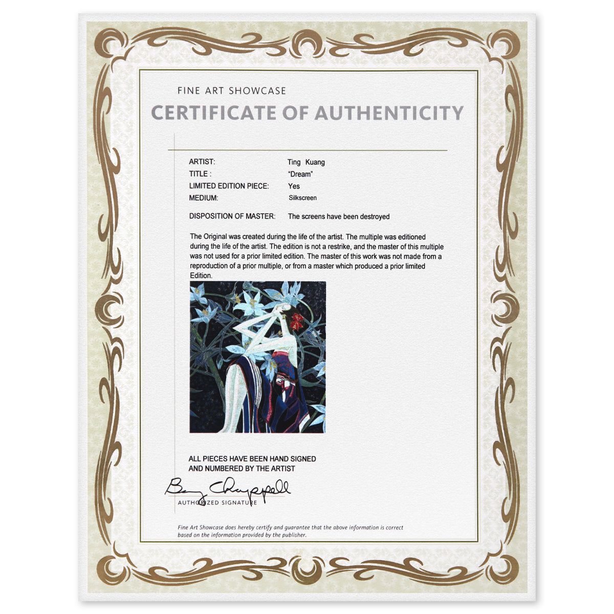 Artist: Ting Kuang. Medium: Silkscreen. Title: Dream. Size: 29" x 28". Signature: Hand Signed and Numbered. Reference#: 80517.