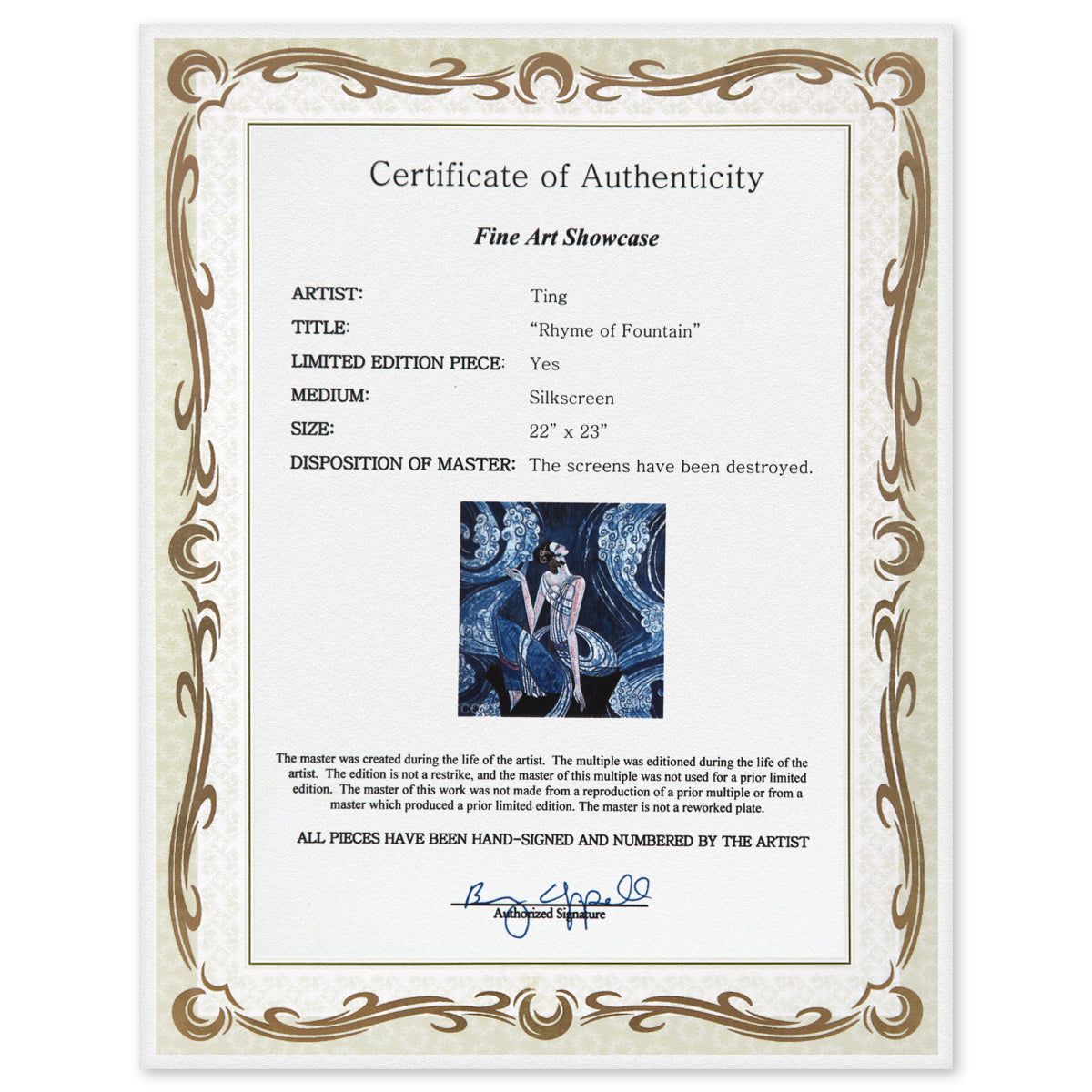 Artist: Ting Kuang. Medium: Silkscreen. Title: Rhyme of Fountain. Size: 23" x 22". Signature: Hand Signed and Numbered. Reference#: 80514.