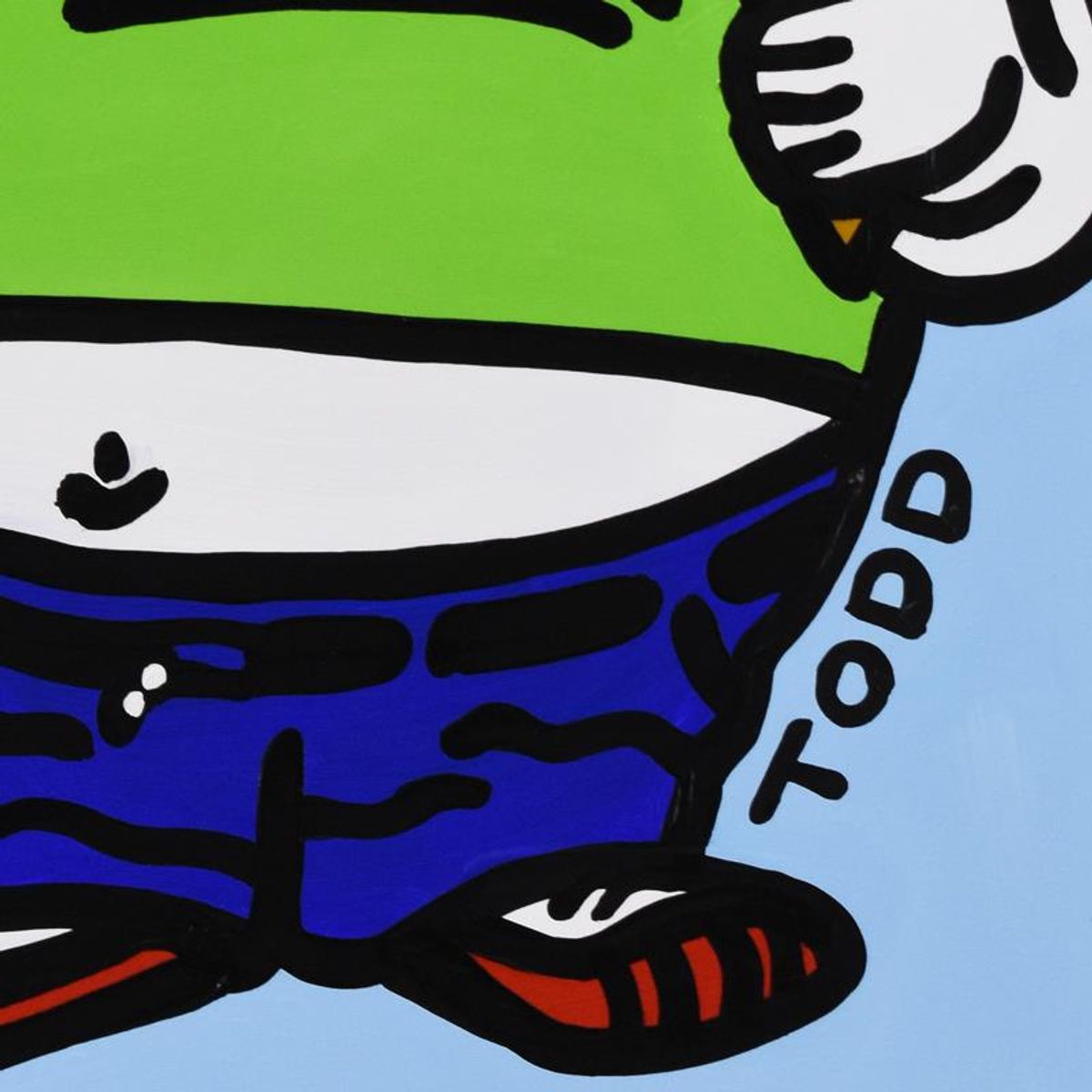 We acquired this piece as part of a larger collection. "I Beat Anorexia" is an original acrylic painting on canvas, hand signed by Todd Goldman. This piece comes framed. Includes Letter of Authenticity. Measures approx. 20" x 26" (frame), 17.5" x 23.5" (image). There is minor wear on the frame but this piece is overall in good condition.