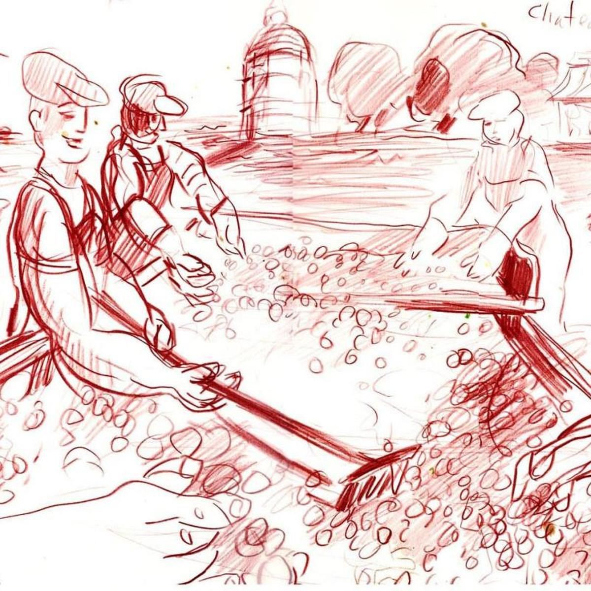 Wayne Ensrud "Harvest at Chateau Latour (Bordeaux)" Pastel Original Artwork; Hand Signed; COA