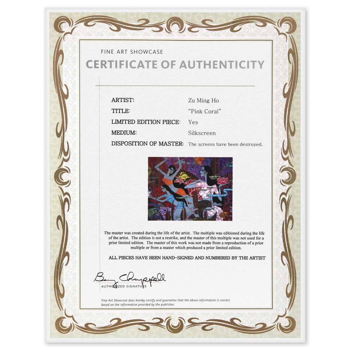 Artist: Zu Ming Ho. Medium: Silkscreen. Title: Pink Coral. Size: 24" x 30". Signature: Hand signed and numbered. Reference#: 74854.