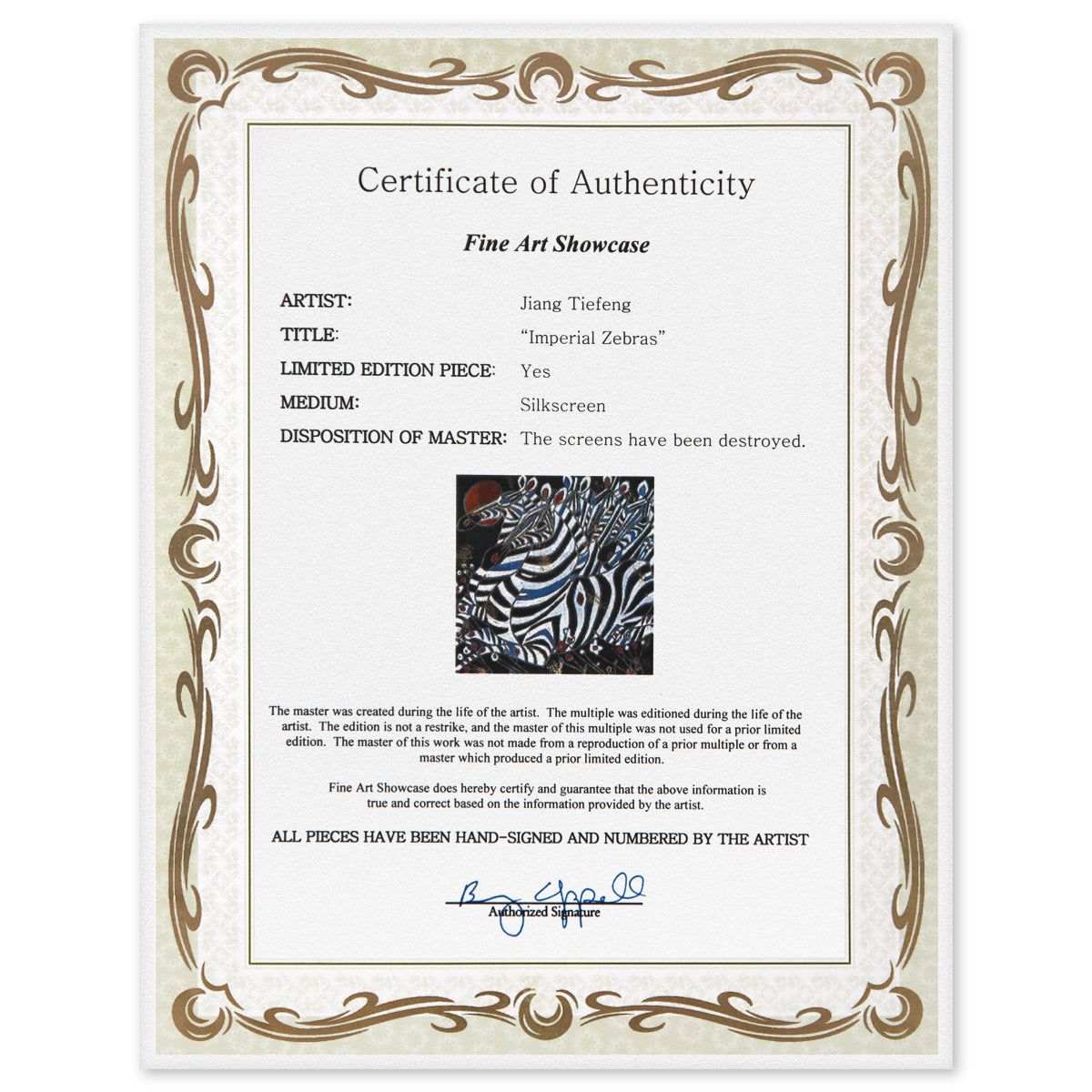 Artist: Jian Tie Feng. Medium: Silkscreen. Title: Imperial Zebras. Size: 41" x 41". Signature: Hand Signed and Numbered. Reference#: 80530.
