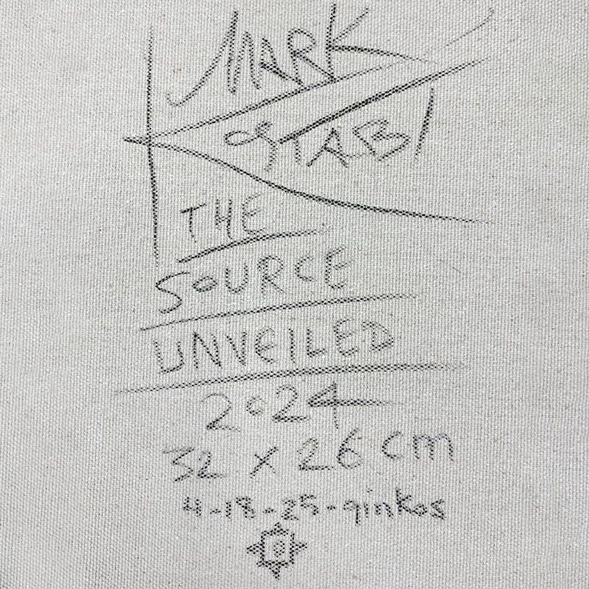 The Source Unveiled is an original oil painting on canvas by Mark Kostabi, hand signed by the artist. This piece comes custom framed. Includes Certificate of Authenticity. Measures approx. 22.5" x 20" (frame), 12.5" x 10" (image).