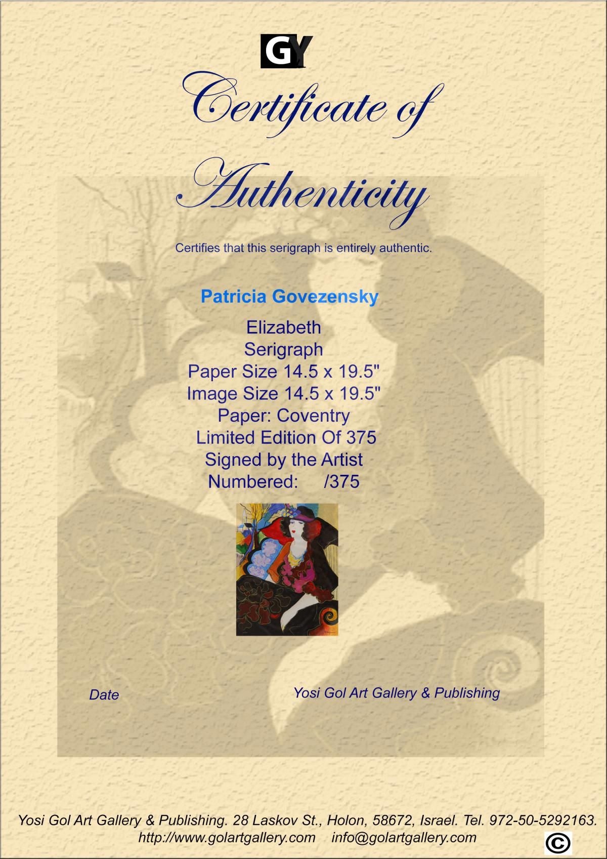 Artist: Patricia Govezensky. Medium: Original Serigraph on Paper. Title: Elizabeth. Size: 19.5" x 14.5". Signature: Hand Signed by the Artist. Certificate of Authenticity: From the publisher. Reference#: 20877.