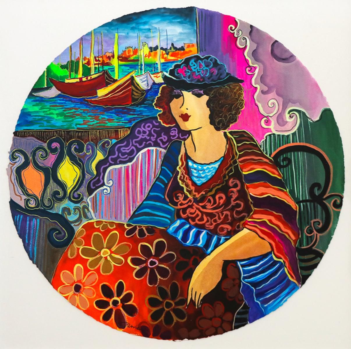 Artist: Patricia Govezensky. Medium: Original Watercolor. Title: Celine. Size: 16" x 16". Measures approx. 22" x 22" (framed). Signature: Hand Signed by the artist. Certificate of Authenticity: From the publisher. Additional: Custom framed. Reference#: 20341.
