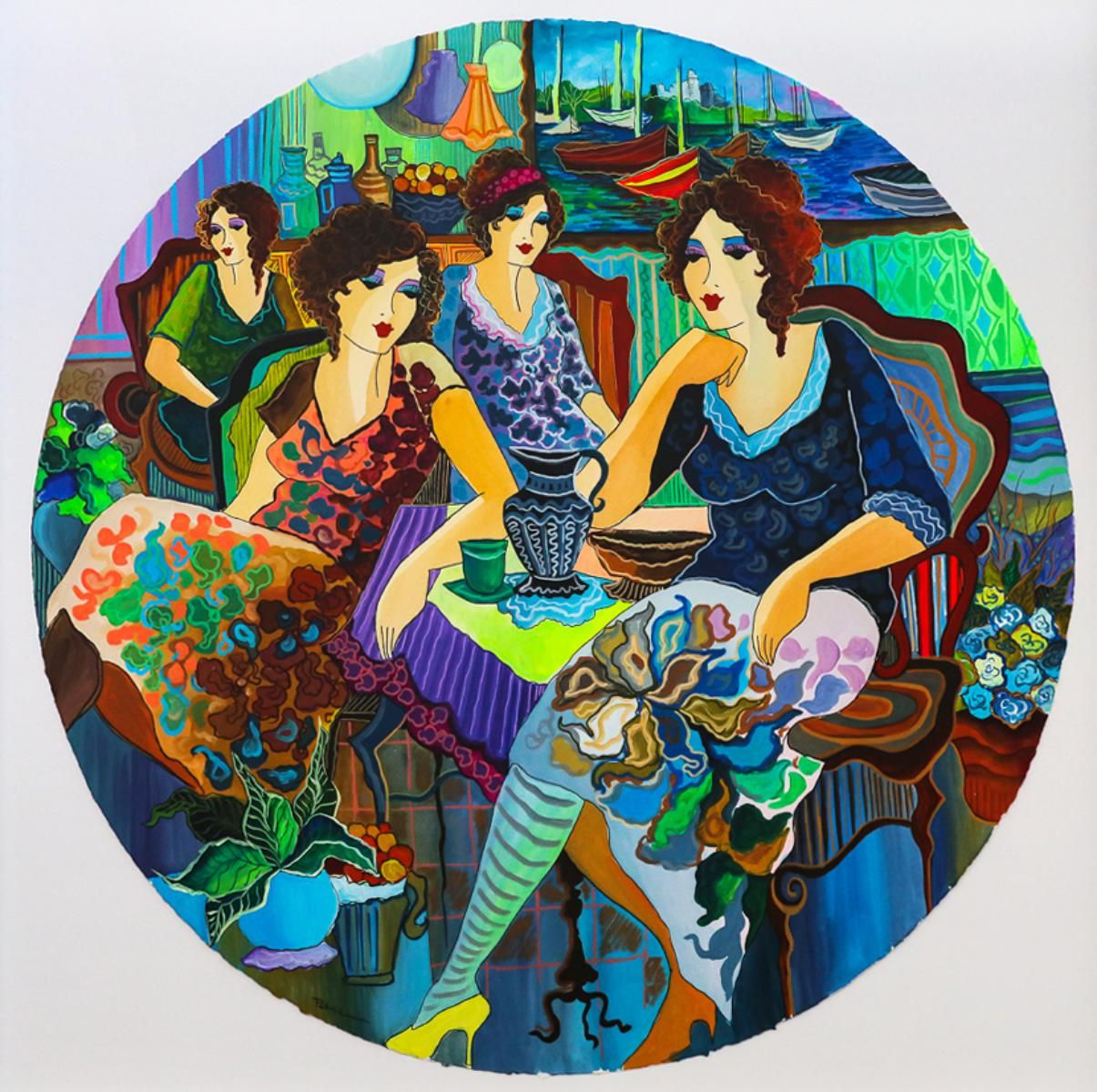 Artist: Patricia Govezensky. Medium: Original Watercolor. Title: Pleasant Thoughts. Size: 35" x 35". Measures approx. 44" x 44" (framed). Signature: Hand Signed by the artist. Certificate of Authenticity: From the publisher. Additional: Custom framed. Reference#: 20252.