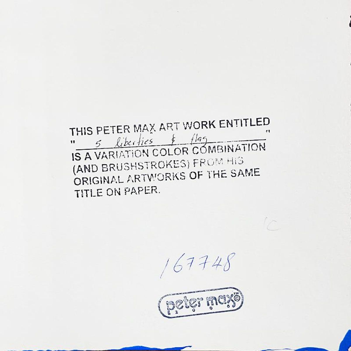 Peter Max, "5 Liberty and Flag" Framed One-of-a-Kind Acrylic Mixed Media, Hand Signed with Registration Number Certifying Authenticity