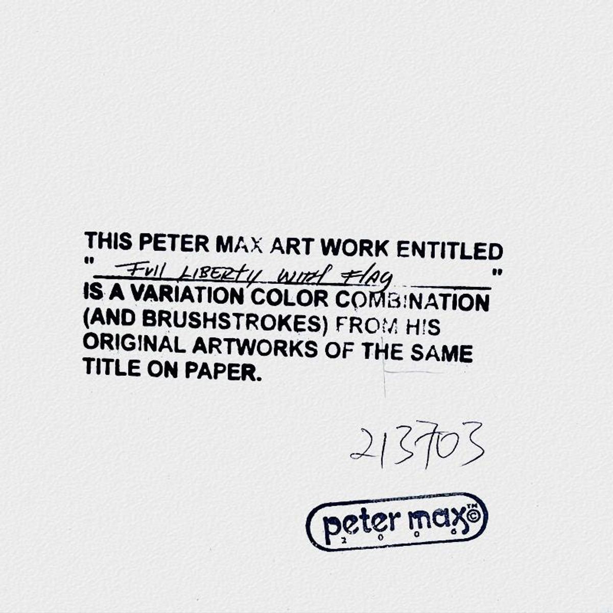Peter Max, "Full Liberty with Flag" Framed One-of-a-Kind Mixed Media, Hand Signed with Registration Number Certifying Authenticity.