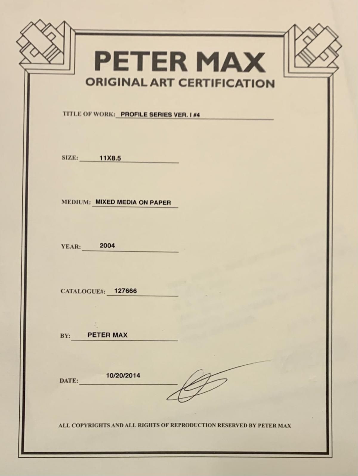 Artist: Peter Max. Medium: Mixed Media on paper. Size: 8" x 11". Signature: Signed. Additional: Registration # 127666 Year: 2004. Reference#: 28533.