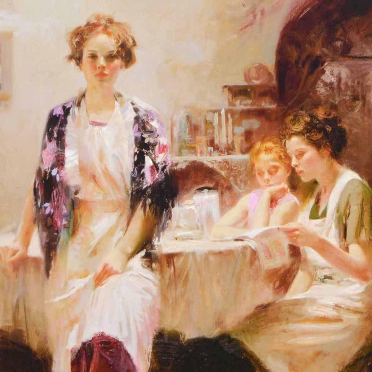 Distant Thoughts is a hand embellished limited edition giclee on canvas by Pino (1939-2010), numbered and hand signed. Includes Certificate of Authenticity. Measures approx. 36" x 40" (image). This piece is not stretched. Reference#: 92868.