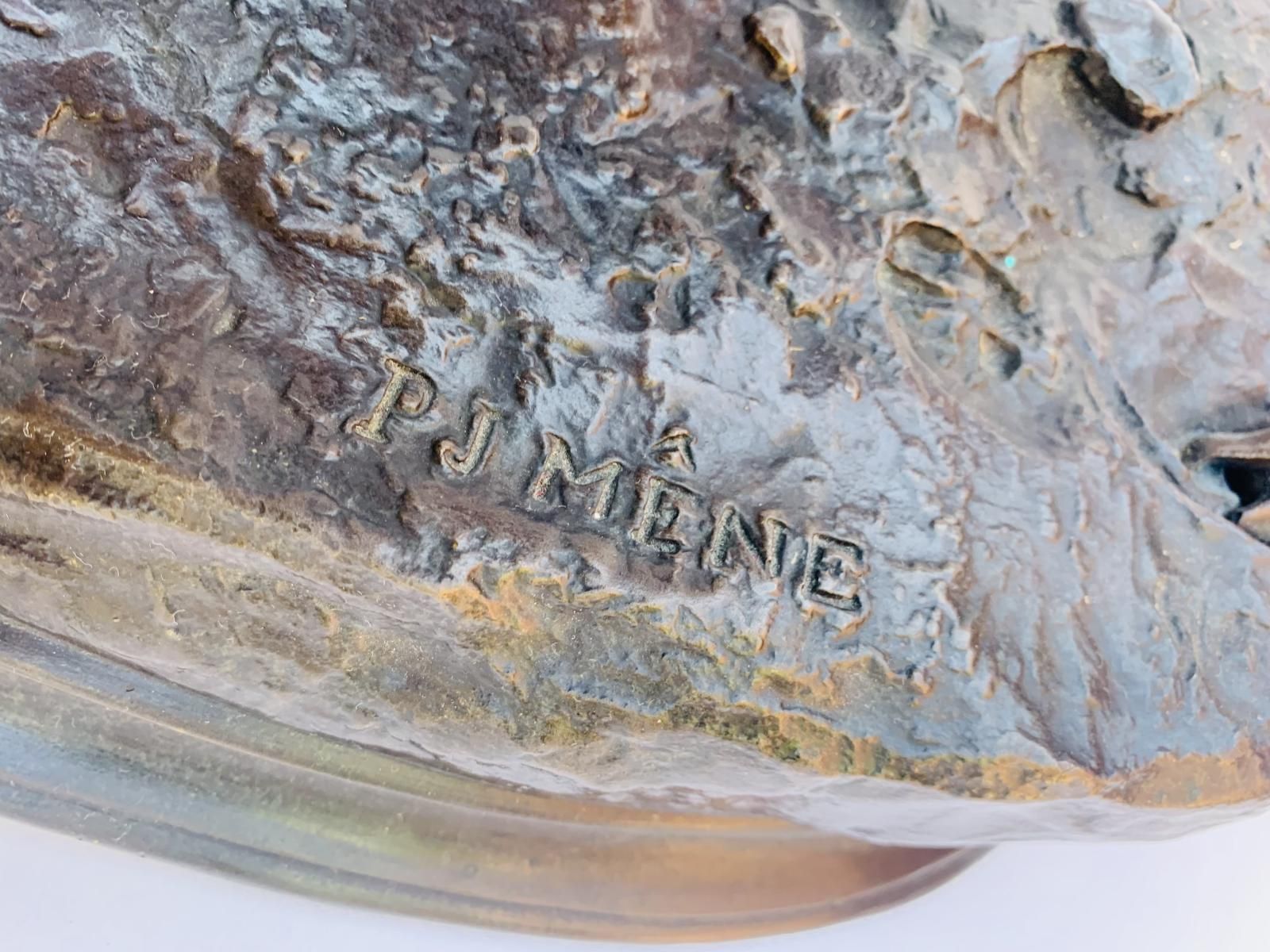 Artist: PJ Mene. Medium: Bronze Sculpture. Title: Fighting Stag. Size: 12" x 12". Additional: Foundry : Collectors West inc - USA early 1980's. Please not the base has small scip on corner refer to image - sold as is. Size: 12x12x22". Reference#: 24990.