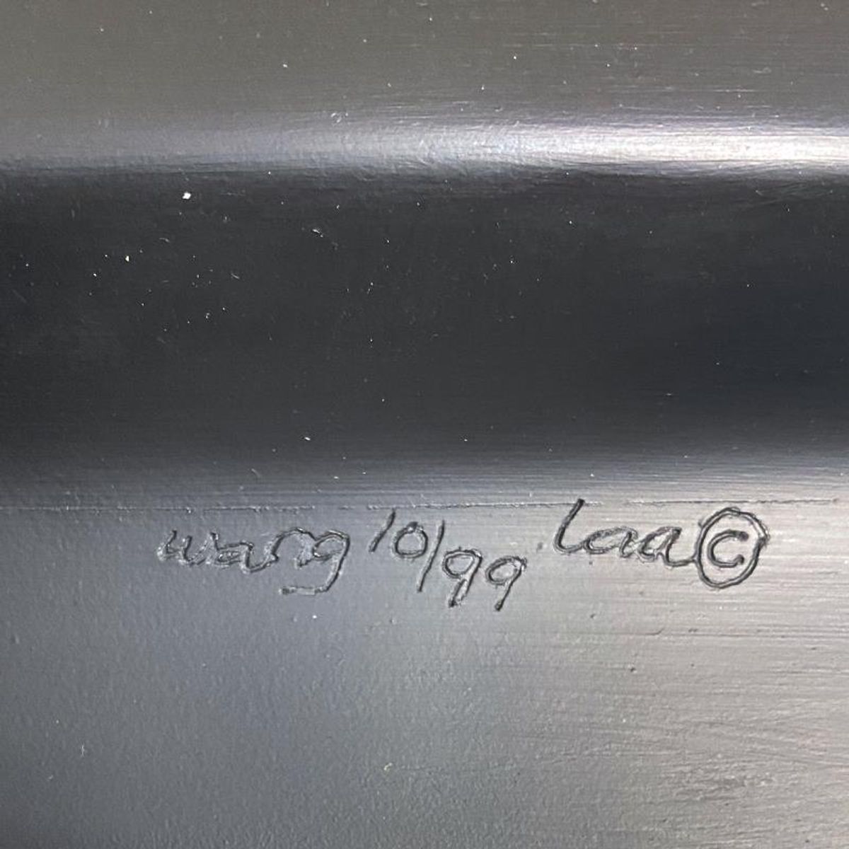 Back to School Blues is a hand painted limited edition, dimensional art, resin sculpture by Wang. This piece is numbered 10/99 and hand signed in verso. Includes Letter of Authenticity. Measures approx. 24" x 15.5" x 12.5 (base with sculpture).