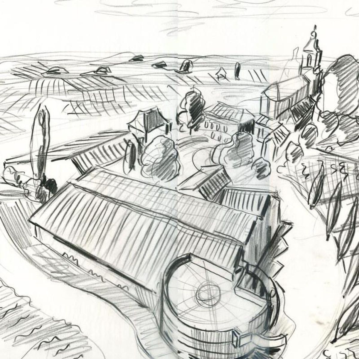 View of Chateau Prieure-Lichine (Bordeaux) is an original Pastel on Paper by Wayne Ensrud. The piece is hand signed by the artist and comes with a Certificate of Authenticity. Measures approximately 12" x 17".